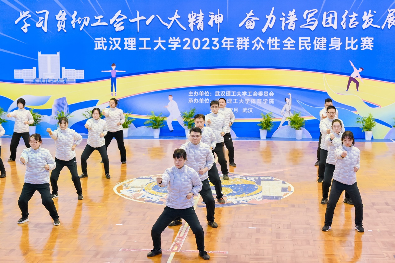 本次学院代表队主要由学院领导、各部门、各系的教职工组成,他们为了取得好成绩,坚持利用课余时间积极训练,克服工作学习生活上的各种困难,从刚开始的生疏到后来的慢慢熟悉,从整体效果的凌乱到最后动作的整齐划一,大家始终严格要求自己,力争每个动作做到最好最到位,充分展示了九州娱乐app 百年土建,一马当先的奋斗精神。