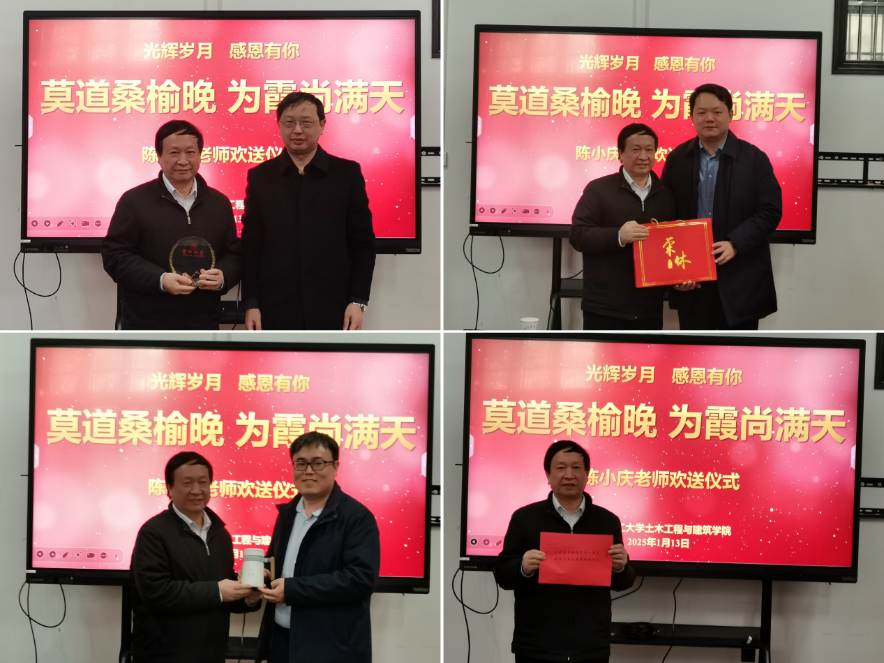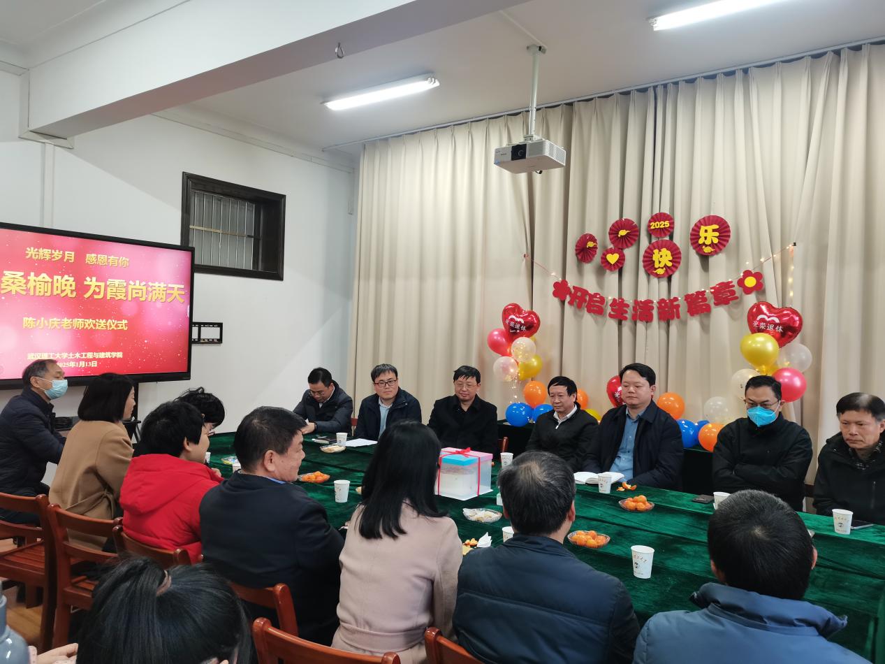 1月13日上午,九州娱乐app 在一片温馨和谐的氛围中,圆满举办了陈小庆老师的欢送仪式。学院领导和教师代表齐聚一堂,共同回顾陈老师在学院多年来的辛勤付出与卓越贡献,向其表达最诚挚的敬意与祝福。