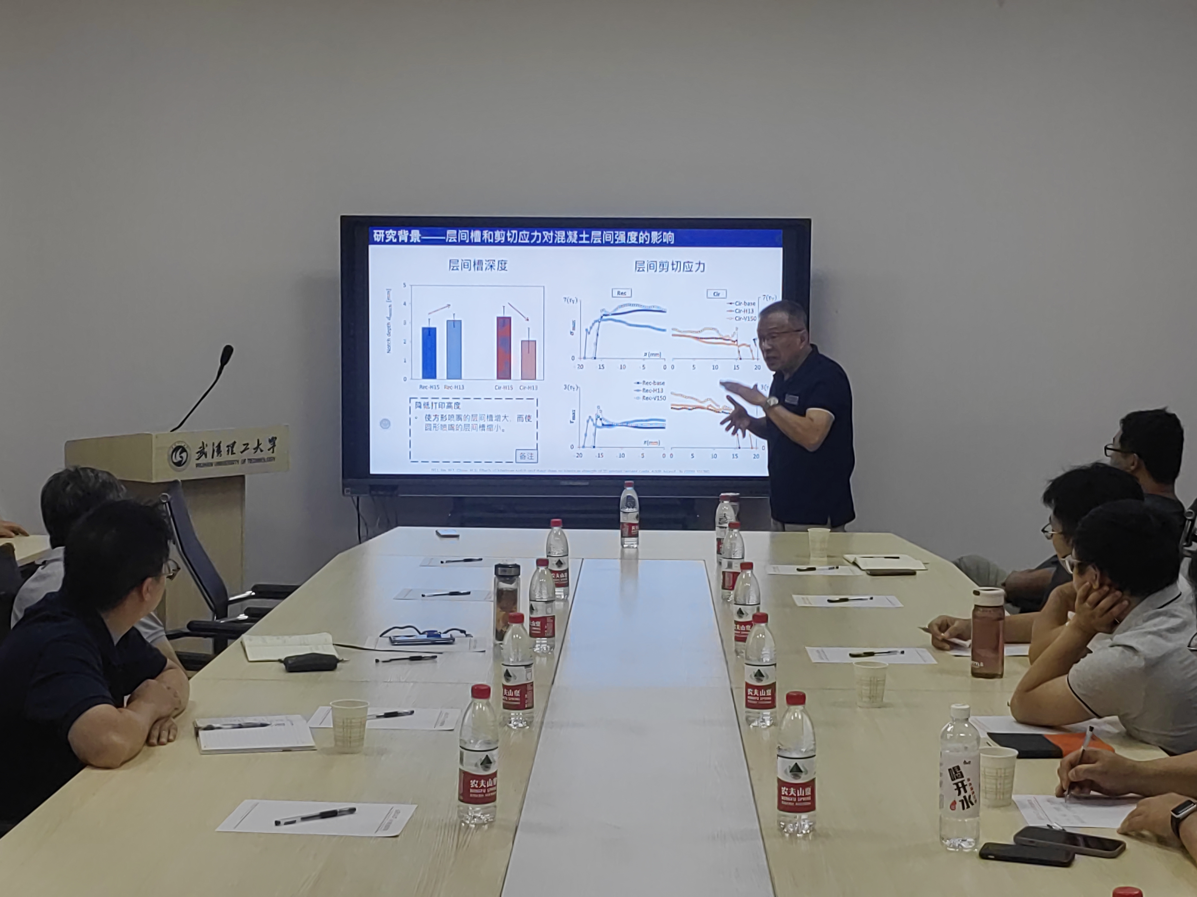 离校前,7月23日上午李教授应邀再次为我校部分师生作了一场精彩的学术报告。李教授报告题目是:“Design of novel nozzles for higher interlayer strength of 3D printed cement paste(提高3D打印水泥浆体层间强度的新型喷嘴设计)”。报告会由刘沐宇教授主持。