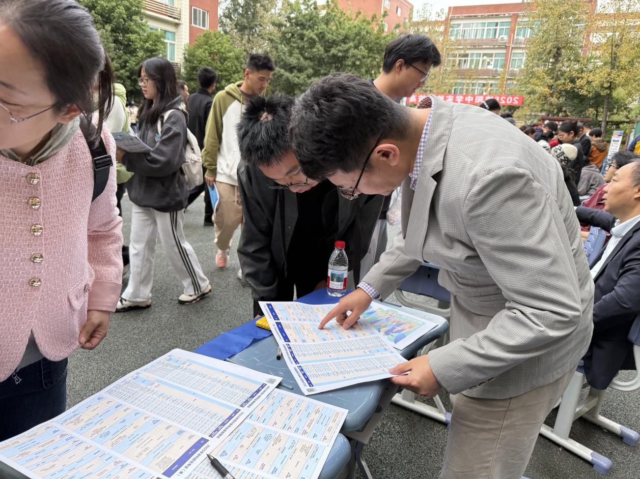 傍晚,招宣组来到了绵阳中学实验学校参与线下咨询会。招宣组老师与考生及家长面对面交流,耐心解答他们关于学校招生政策、专业选择、未来发展方向等方面的疑问。现场还发放了精心准备的招生宣传资料和文创,以便考生和家长能更全面地了解学校情况。此次在绵阳中学实验学校的咨询会同样受到了热烈欢迎,众多考生和家长积极参与,进一步扩大了我校在该校的影响力。