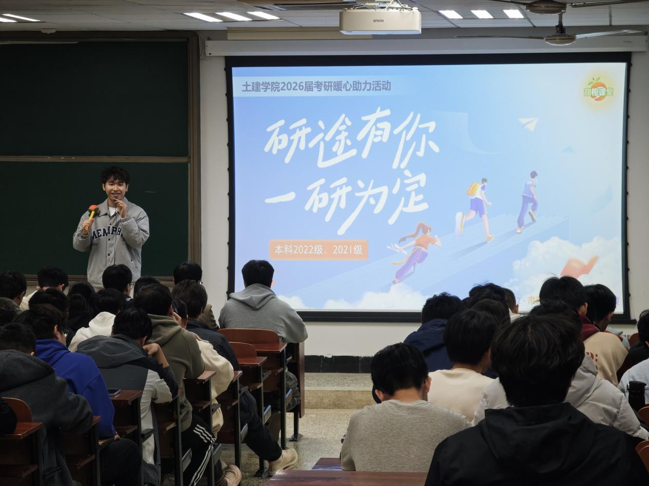 11月16日下午,九州娱乐app 为2026届考研学子精心举办“研途有你,一研为定”考研冲刺暖心助力大会,为正处于备考关键期的同学们送上暖心鼓励与实用指导。