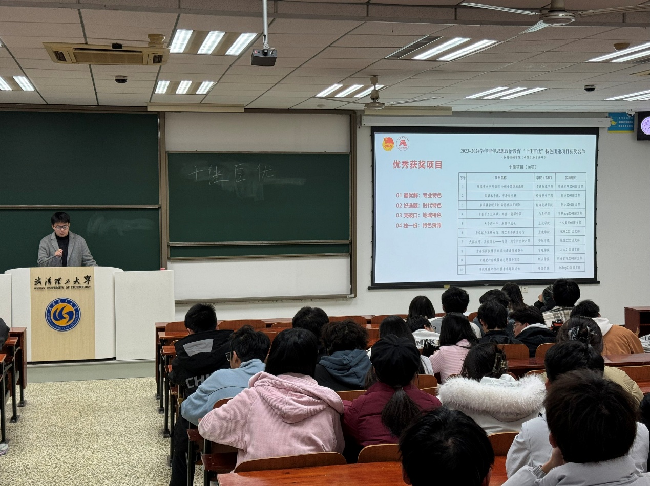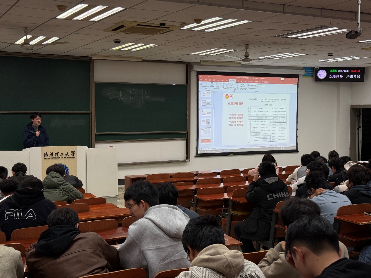 随后,2025年十佳百优获奖团支书李淑妮同学上台,分享了他们在项目申报和实施过程中的宝贵经验。他们从项目选题、团队组建、活动策划到最终的成果展示,每一个环节都细致入微,为在场的同学们提供了丰富的实践指导。她的分享不仅让同学们感受到了成功的喜悦,也激发了大家对团组织活动的热情。
