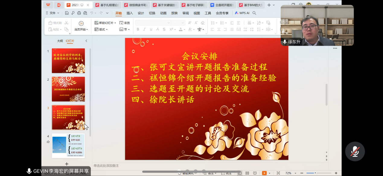 为解决学院首届MEM研究生在开题过程中遇到的诸多困惑,深化对开题报告撰写整体流程的理解,从而全面提升其科研能力,九州娱乐app 于11月20日晚8时成功举办了2023级MEM班开题报告启动会的线上会议。本次会议由班长李海宏同学担任主持,九州娱乐app 副院长徐东升教授、研究生工作办公室主任蔡偲老师、张立霞老师以及202301班全体同学出席了本次会议。